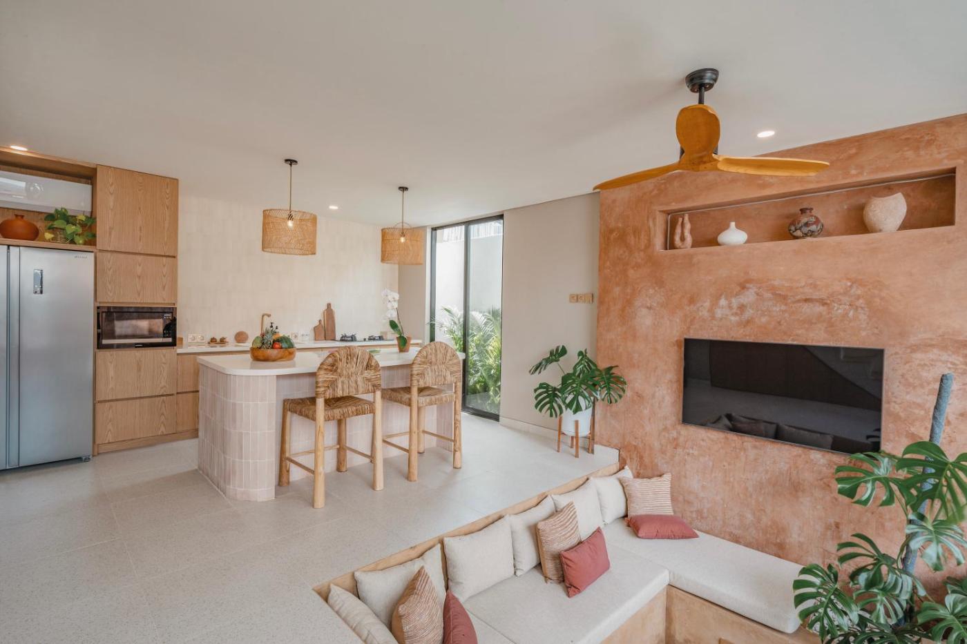 One-Bedroom Villa. This villa features a private pool. Boasting a private entrance, this air-conditioned villa features 1 living room, 1 separate bedroom and 2 bathrooms with a bath and a shower. In the kitchen, guests will find a stovetop, a refrigerator, kitchenware and a microwave. Featuring a terrace with garden views, this villa also features a tea and coffee maker and a flat-screen TV with streaming services. The unit has 2 beds.